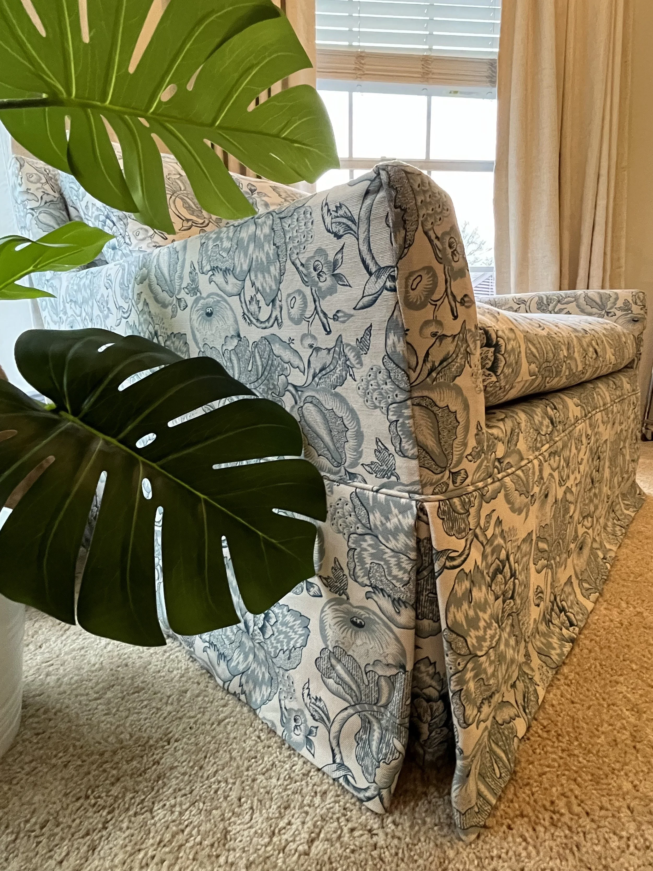 This type of slipcover requires about 8 yards of fabric and I knew I didn’t want to spend more than $200 on fabric in total so I started searching online for fabrics that fit the budget - roughly $25/yard.